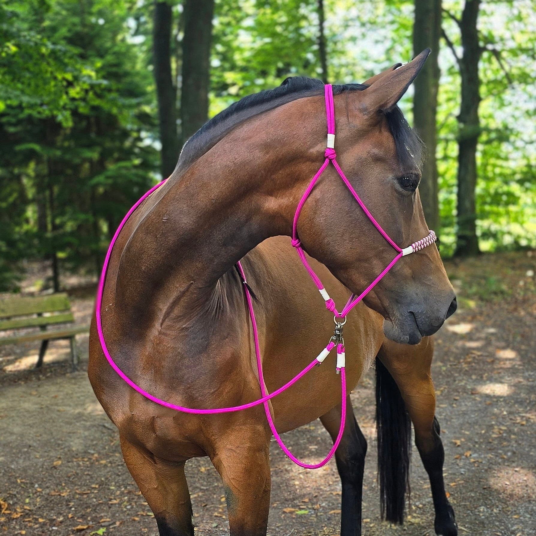 Die Grundfarbe dieser Zügel ist Pink. Du kannst eine weitere Farbe für die Takelung und die Farbe der Beschläge wählen.